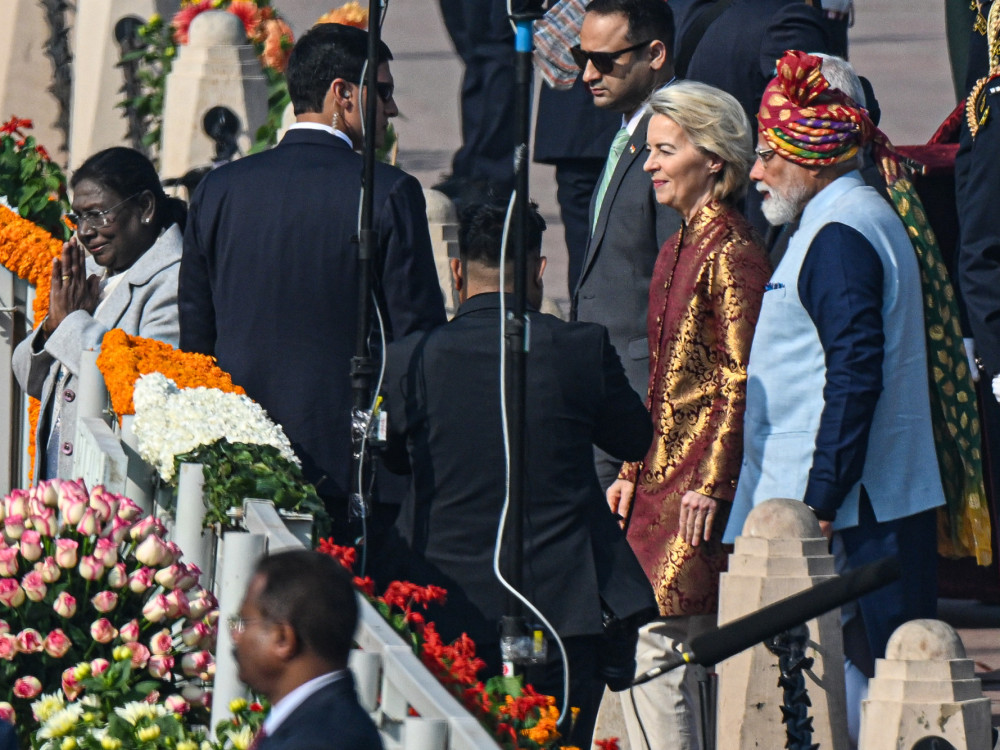 Predsednica Evropske komisije Ursula von der Leyen je po porazu v Evropskem parlamentu, ki je sklenil, da sporazum z Mercosurom predloži Sodišču Evropske unije, svojo pozornost na področju trgovine preusmerila drugam. Skupaj s predsednikom Evropskega sveta Antoniom Costo pod Himalajo trenutno obeležuje praznovanje dneva republike Indije.
