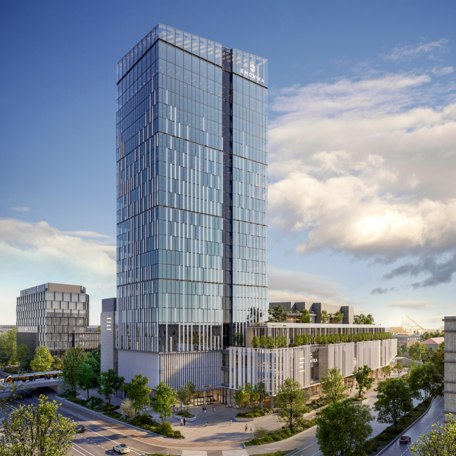 Najbolj izstopajoči del kompleksa bo stometrska stolpnica na južni strani območja, ki bo imela 23 nadstropij, pritličje in štiri podzemne etaže. Stavba, ki bo hkrati najvišja poslovna stolpnica v državi, bo po napovedih investitorja osrednji vizualni poudarek novega potniškega vozlišča.