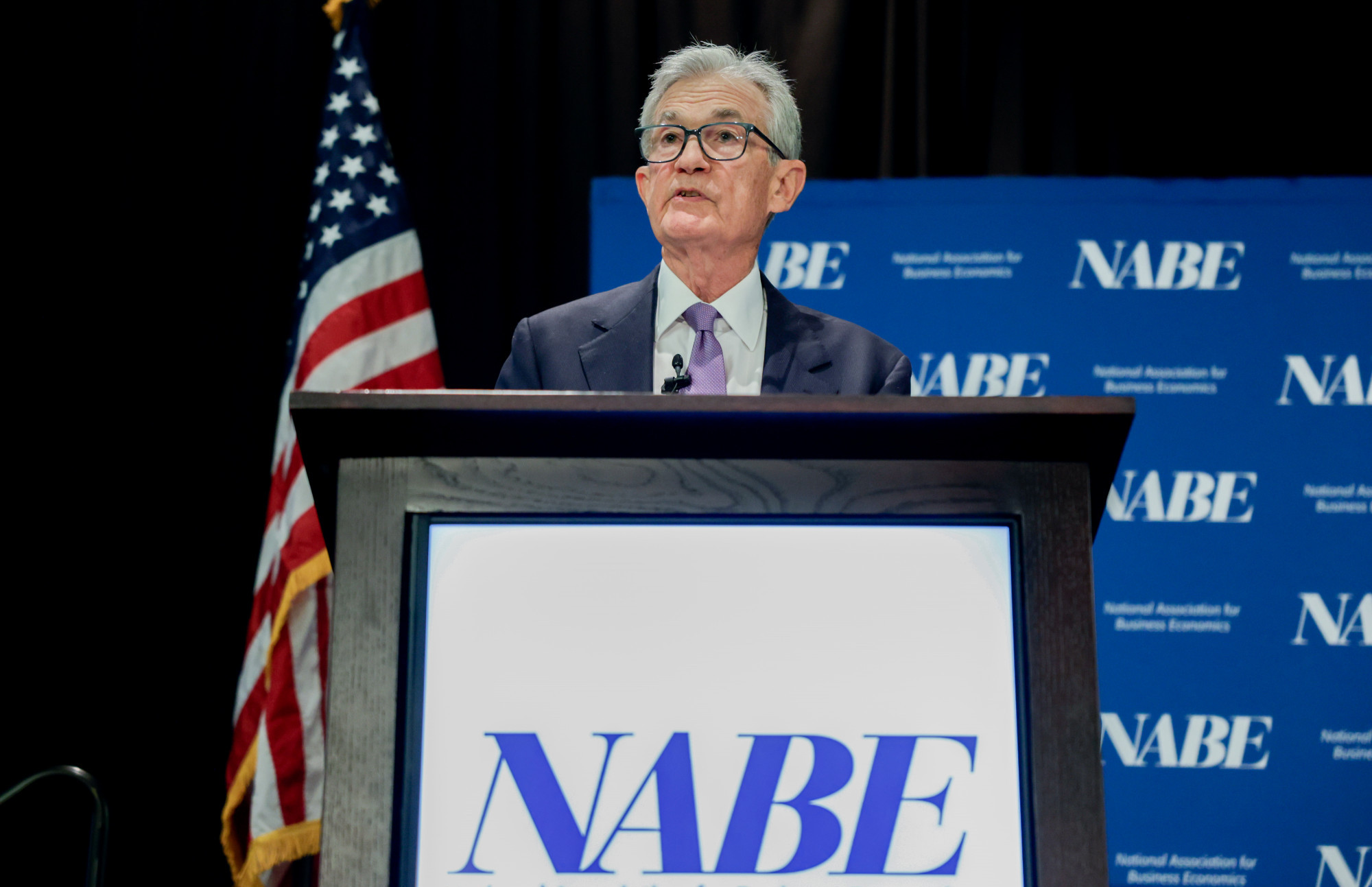 Powell je na letošnjem srečanju NABE poudaril, da se razmere na trgu dela še naprej slabšajo, kar krepi pričakovanja vlagateljev, da bo ta mesec sledilo novo znižanje obrestnih mer, poroča Bloomberg.