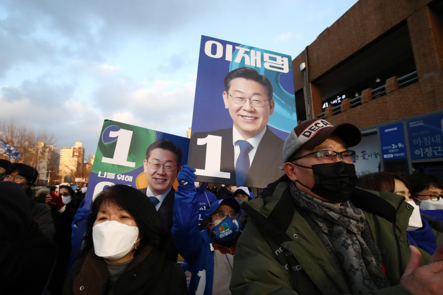 Podporniki Lee Jae Myunga med predsedniško volilno kampanjo v Seulu leta 2022. Foto: Chung Sung-Jun - Getty Images