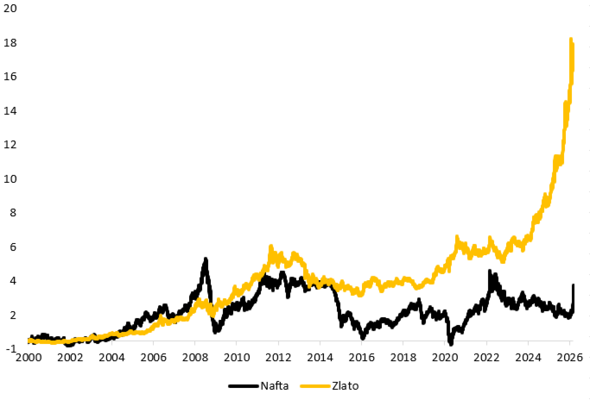 Zlato je od leta 2000 beležilo znatno večjo rast kot nafta in z manj volatilnosti