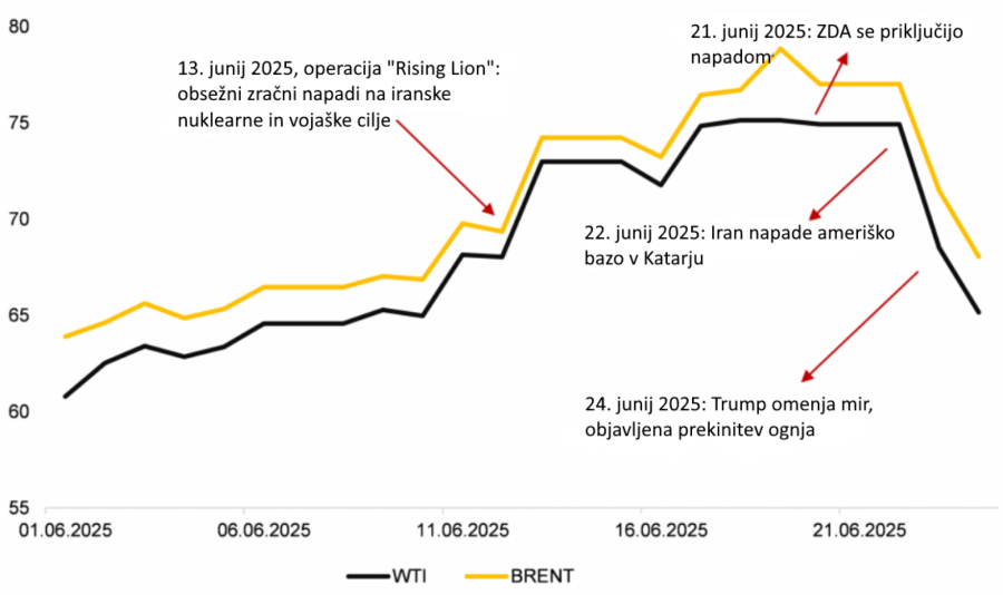 Cene nafte od začetka eskalacije v Iranu