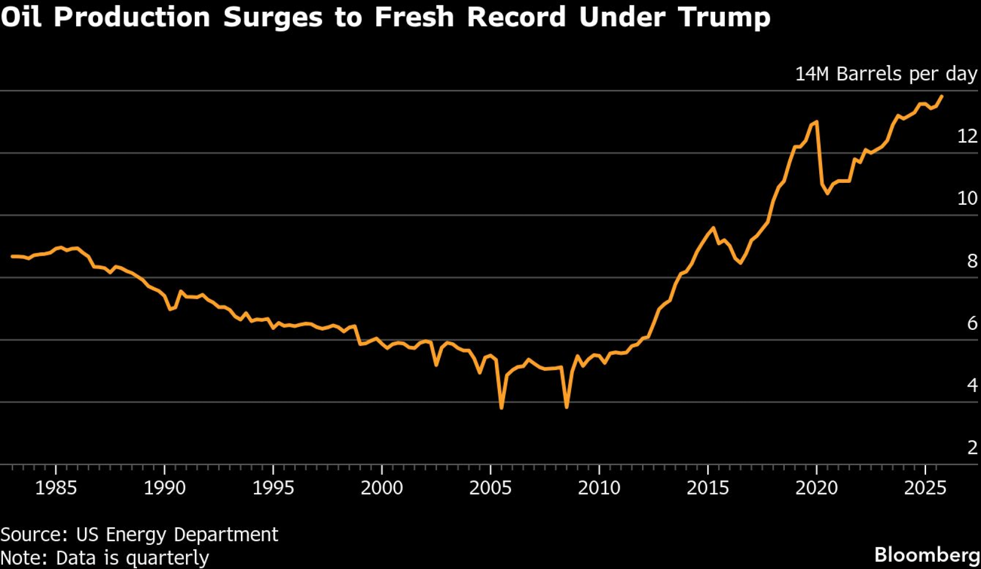 Proizvodnja nafte je letos znova dosegla rekordne ravni in septembra presegla 13,8 milijona sodov na dan. Rast sledi trendu, ki se je začel že leta pred Trumpovo vrnitvijo v Belo hišo, in traja predvsem zaradi tega, ker proizvajalci iz vsake nove vrtine pridobivajo vse več.