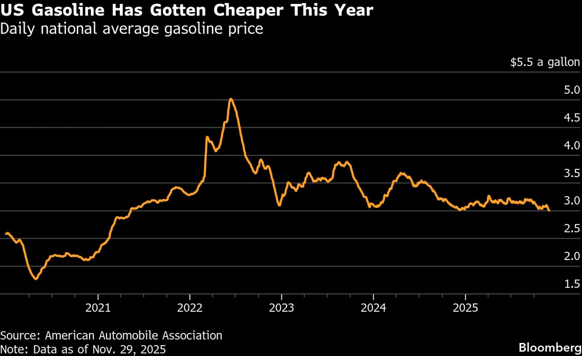 Bencin se je letos v ZDA pocenil. Vir: Bloomberg
