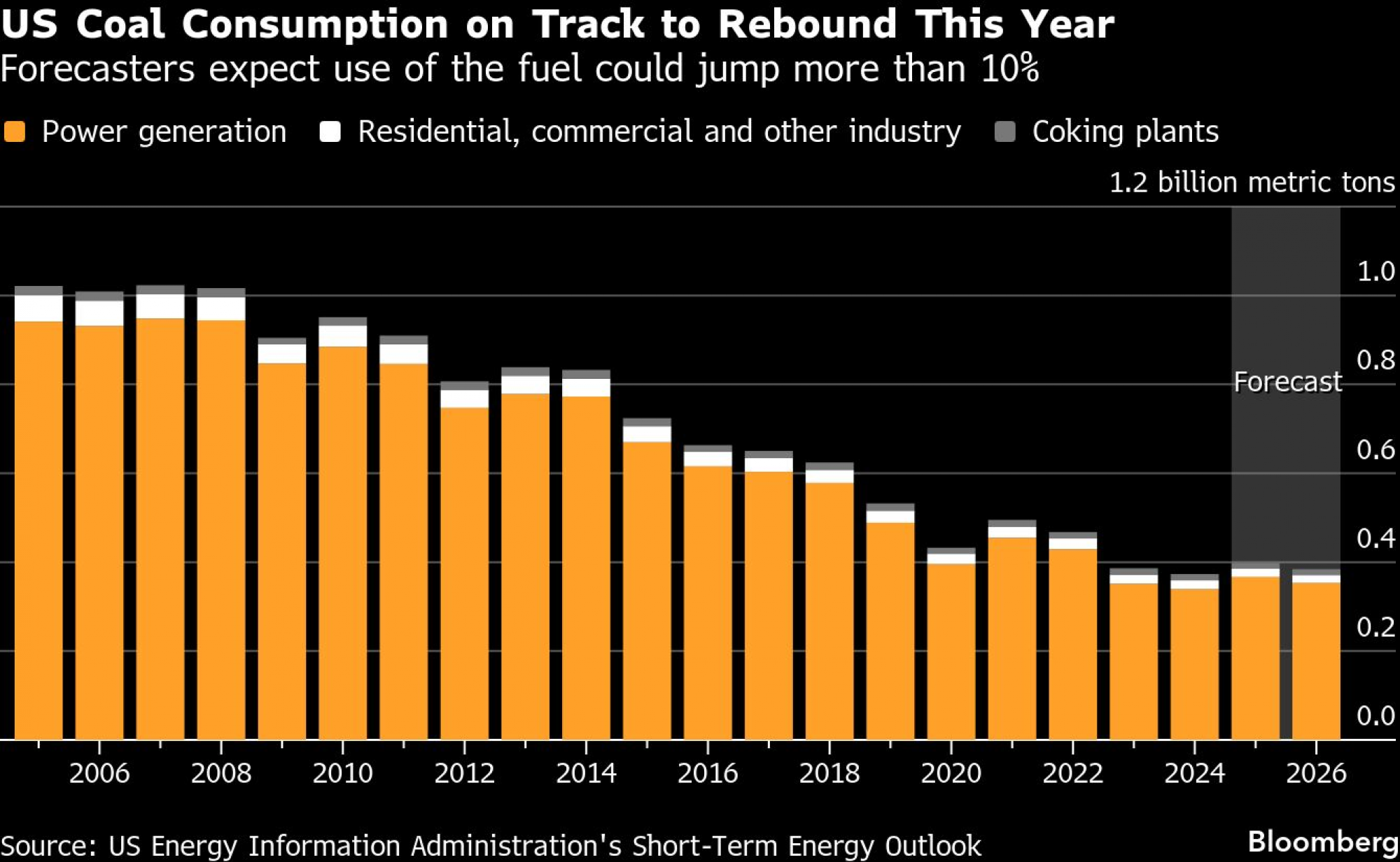 Premog, ki ga Trump v prvem mandatu ni uspel oživiti, ima letos zelo dobro leto. Poraba v ZDA naj bi dosegla okoli 448 milijonov kratkih ton, kar je približno 37 milijonov ton več kot leta 2024, po podatkih EIA, ki jih je zbral Bloomberg. Kljub temu je povpraševanje še vedno okoli 60 odstotkov nižje kot na vrhuncu leta 2007.