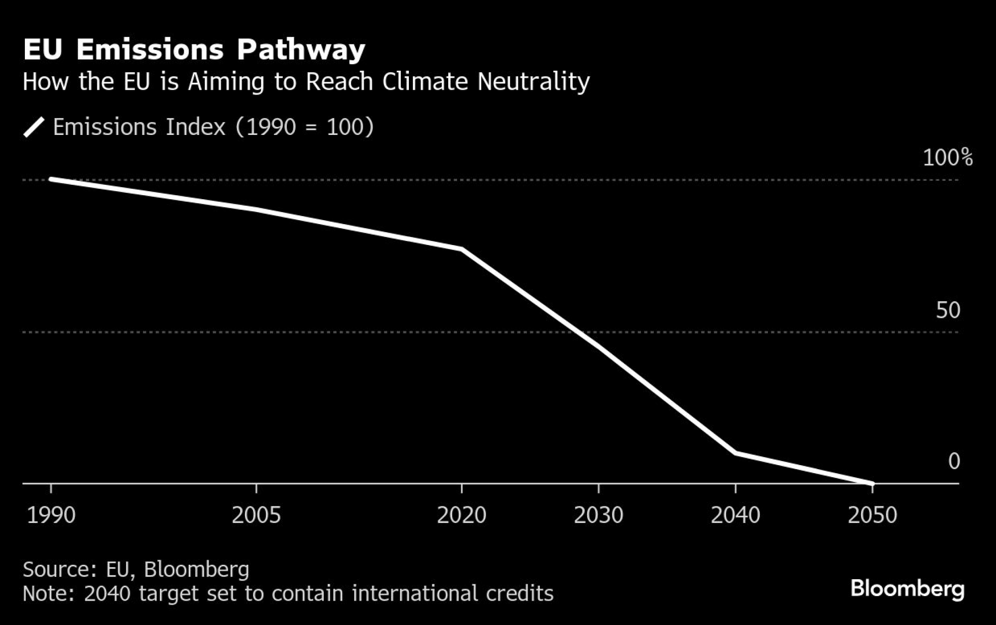 Načrti EU glede zmanjšanja emisij - kako doseči ogljično nevtralnost. Vir: Bloomberg