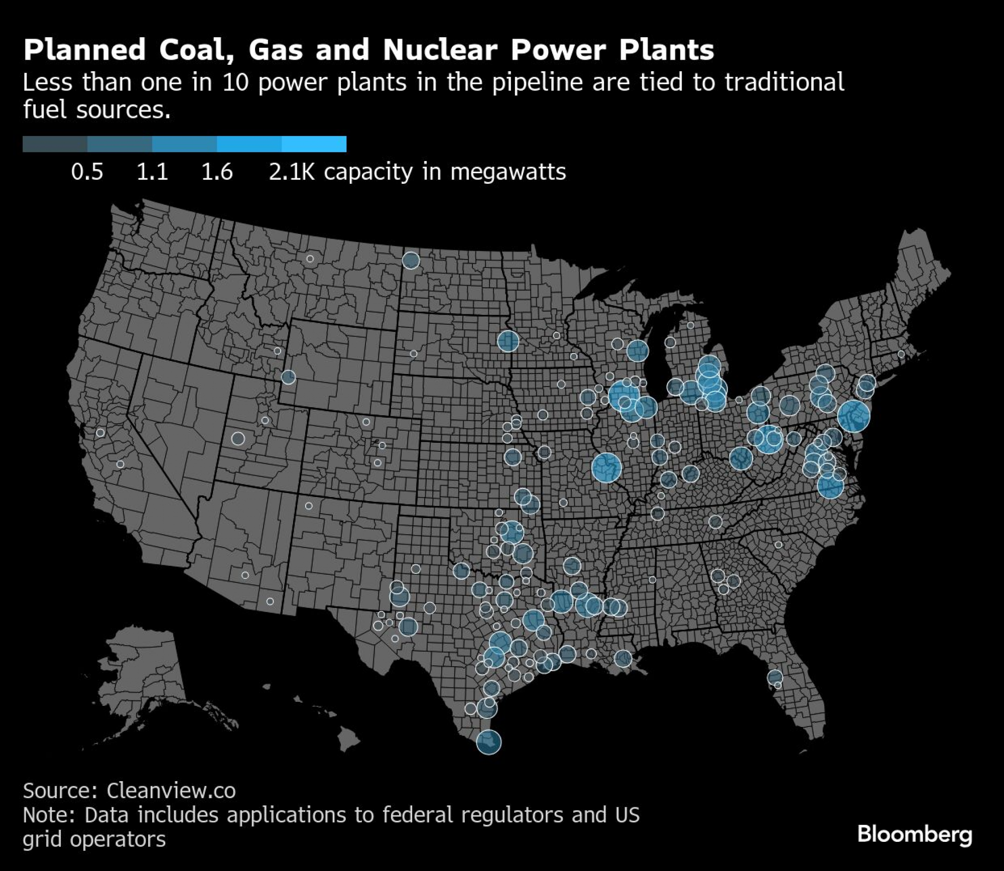 Načrtovane elektrarne na premog, plin in jedrsko energijo. Foto: Bloomberg