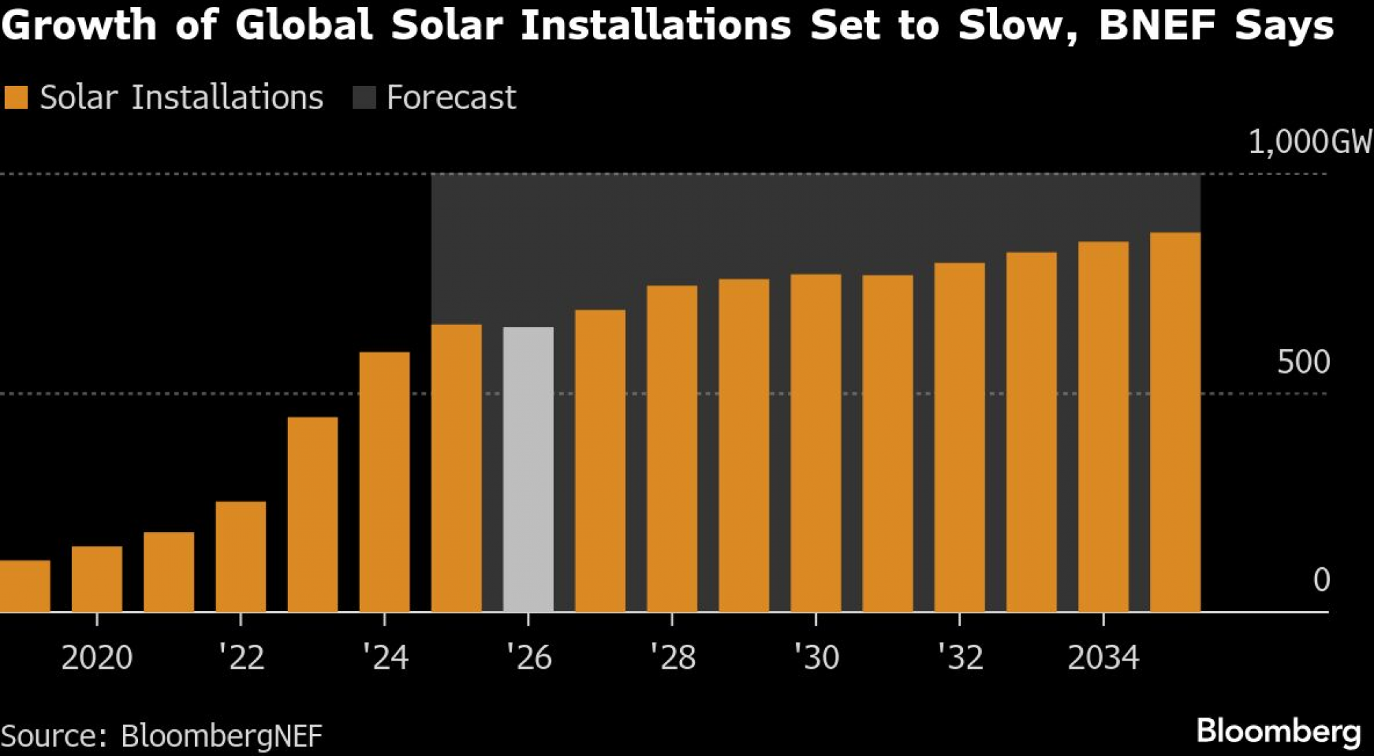Svetovne solarne instalacije bodo leta 2026 doživele prvi padec v zgodovini