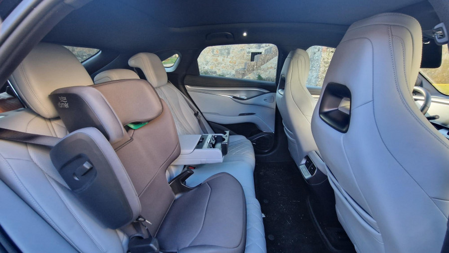 Po standardu WLTP znaša njegov doseg približno 500 kilometrov, v praksi pa bo verjetno nihal med 350 in 400 kilometri, kar je povsem spodobno za avtomobil s pogonom na vsa štiri kolesa, ki z nekaj potniki in prtljago zlahka doseže maso treh ton in ima več kot 530 konjskih moči.