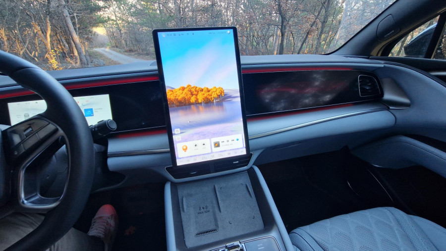 Ob štirih USB-priključkih (dva spredaj, dva zadaj) je na voljo tudi hlajeni brezžični polnilnik za telefon z močjo 50 W, ki svoje delo opravlja odlično. Integracija telefona prek Android Auta poteka gladko, čeprav še vedno ne morete uporabljati zaslona v pokončnem (portretnem) načinu, ko je telefon povezan. Škoda, saj trik z obračanjem 15,6-palčnega zaslona informativno-razvedrilnega sistema nima pravega smisla, če ga ne morete uporabljati za navigacijo.