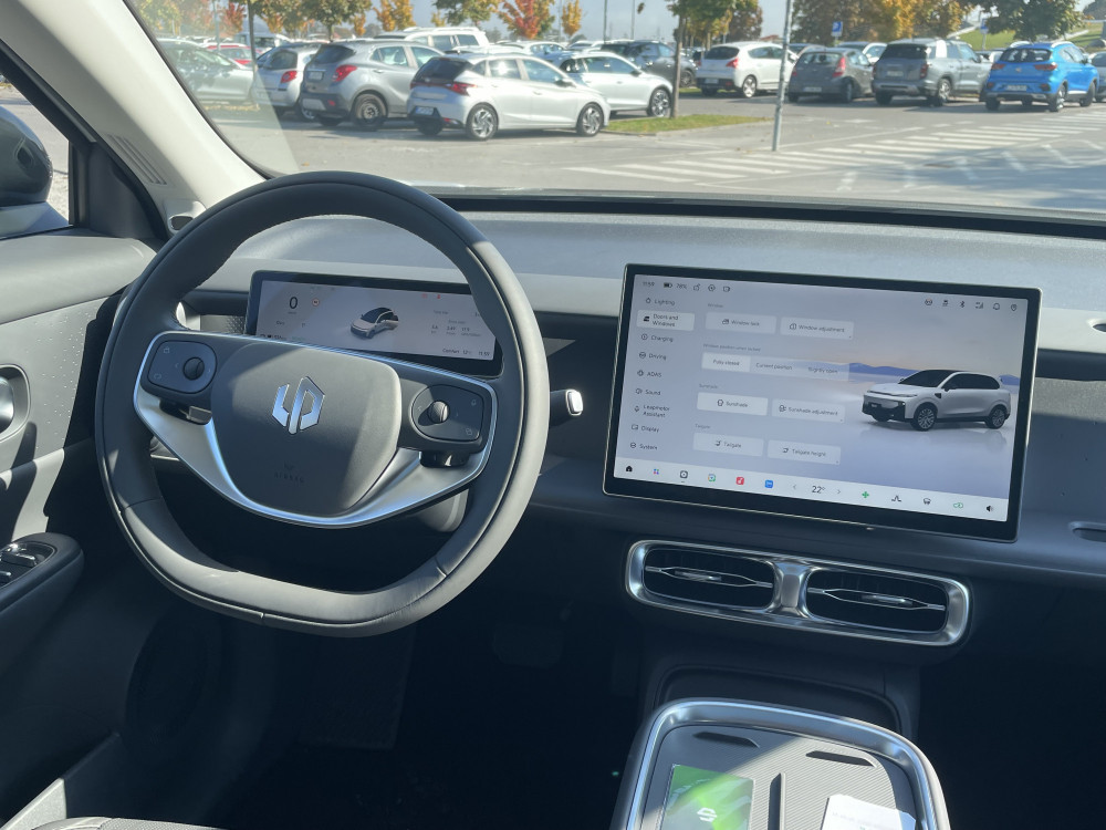Na 2.735 milimetrov medosne razdalje se na račun koncernske platforme Leap 3.5, ki omogoča integracijo baterije v karoserijo avtomobila, ponuja precej prostora za potnike na zadnjih sedežih in uporabnih odlagalnih površin v voznikovi neposredni bližini. Všečna in zračna kabina je tudi praktična, in sicer v smislu modularnosti, saj lahko vse sedeže zložimo v enakomerno ravnino, kar je posebnost. V nosu avtomobila je skrit še priročen 25-litrski shranjevalni prostor za polnilne kable, ki navlake razbremeni prtljažnik.