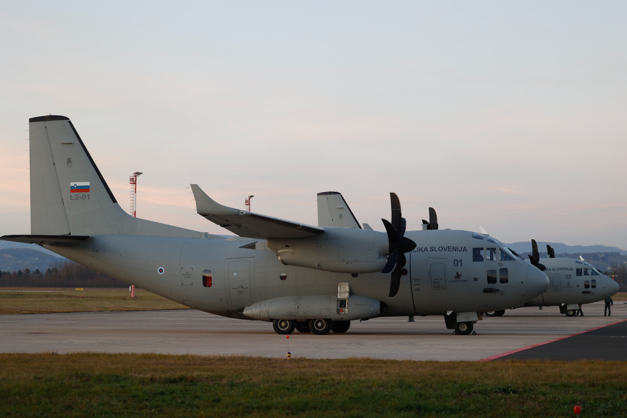 Dve novi transportni letali Slovenske vojske leonardo C-27J spartan v pripravljenosti. Foto: Bobo