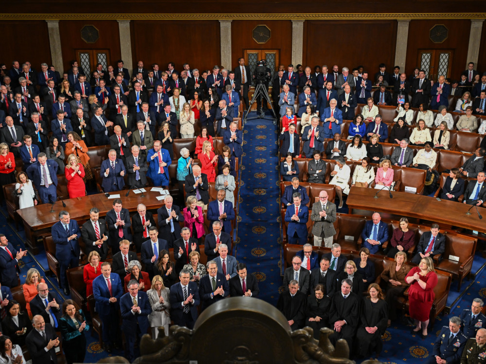 Predsednik Trump je v svojem govoru o stanju v državi proslavil olimpijske zmage in vojaško junaštvo.