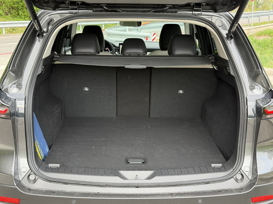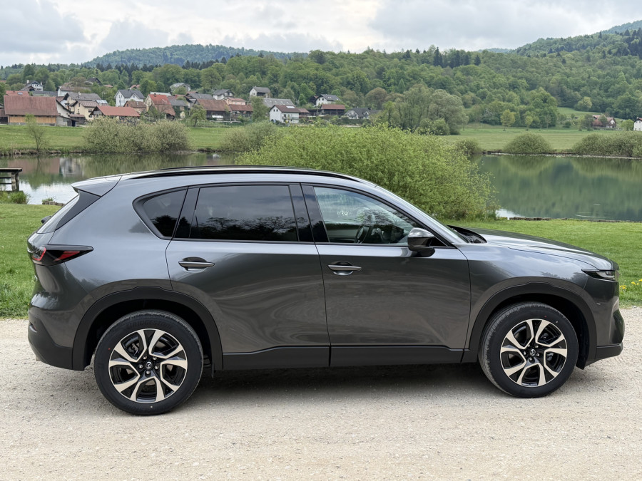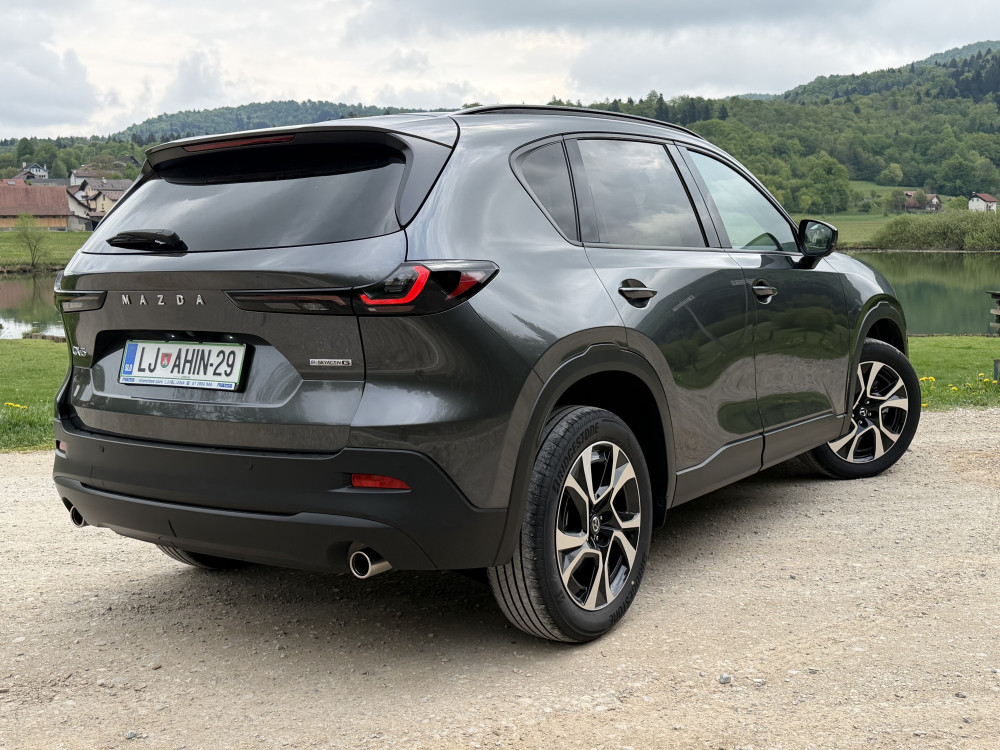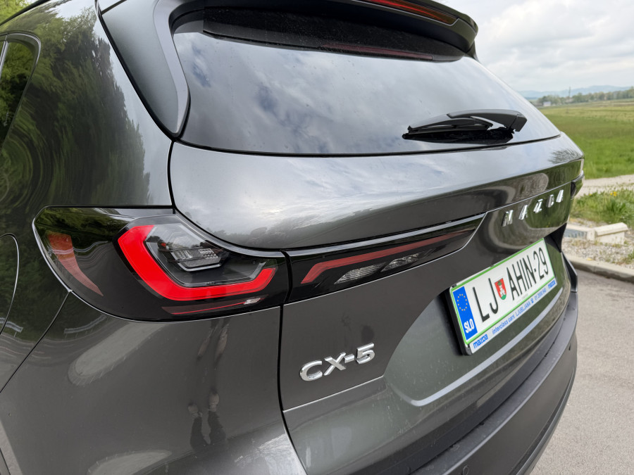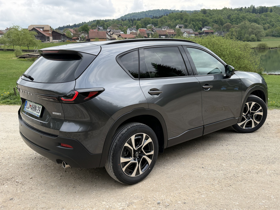 Nova mazda CX-5 je v dolžino in medosno razdaljo zrasla za opaznih 11,5 centimetra, kar neposredno nagovarja primarno ciljno skupino - mlajše, rekreativno aktivne družine. Ta prirastek se najbolj pozna tam, kjer je bilo v preteklosti največ kritik, na zadnji klopi in v prtljažniku.