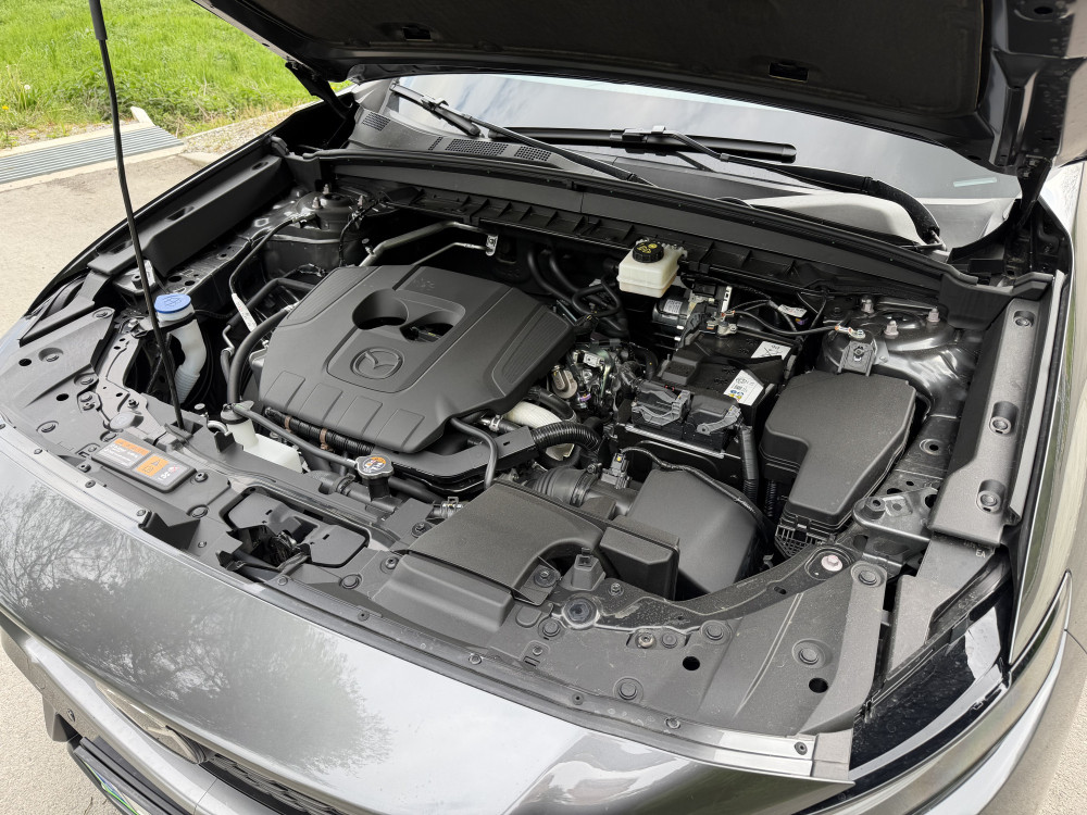 Pod pokrovom motorja ostaja Mazda zvesta svojemu 2,5-litrskemu atmosferskemu štirivaljniku skyactiv-G z blagohibridno tehnologijo. 24-voltni hibridni pogon zadostuje za največjo moč 104 kilovatov (141 KM), kar je manj od predhodnih 194 KM. Zmanjšanje moči je posledica optimizacije za nižje emisije in večjo učinkovitost v realnih pogojih vožnje, v praksi avtomobil zaradi tega sicer ne pušča opaznejšega vtisa podhranjenosti. K temu pripomore 263 Nm navora pri 3.000 vrtljajih na minuto, čeprav pospešek do 100 km/h v 10,5 sekunde ni v ničemer vznemirljiv. Pozneje se bo edinemu agregatu pridružil še hibridni pogon, vendar podrobnosti pri Mazdi še ne razkrivajo. Načrtov za vgradnjo šestvaljnega dizla ni. Na voljo je izključno samodejni menjalnik.