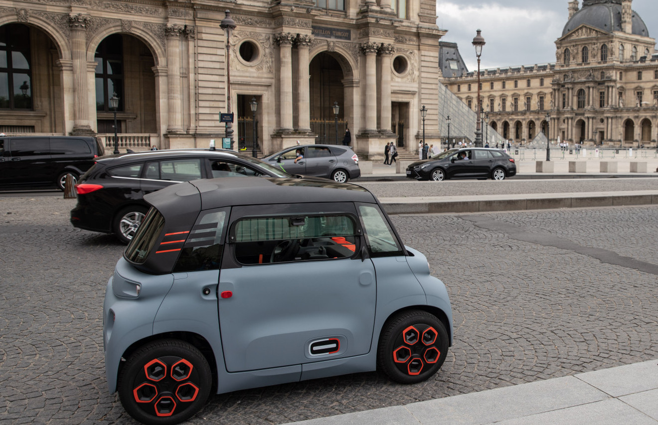 Citroën Ami zlaka kroži okol Louvre v Parizu. Foto: Getty Images/Getty Images Europe