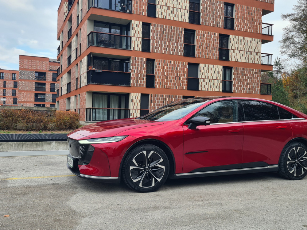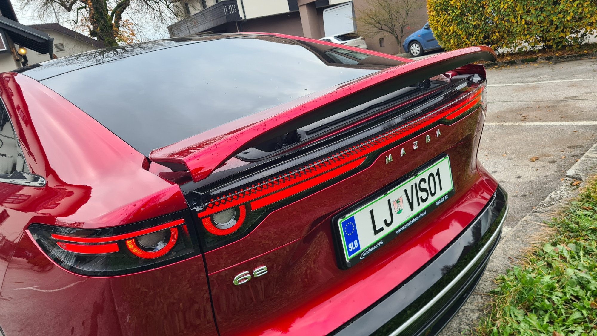 Na testnem krogu mi je bilo hitro jasno, da gre za večji avtomobil. Od stare mazde6 je ta daljša in širša za pet ter višja za štiri centimetre. V dolžino sega kar 492 centimetrov. To je 20 centimetrov več od tesle model 3 in slaba dva centimetra manj od audija A6. Lepo je sesti za volan limuzine, ki s trga izginjajo. Kljub kupejevski strehi je prostora na zadnjih sedežih dovolj za potnike višine do 185 centimetrov, pravijo. Prtljažnik ima 466 litrov prostora oziroma 1.074 litrov, ko so zadnja naslonjala podrta. Dodaten prtljažnik z 72 litri se skriva pod prednjim pokrovom.