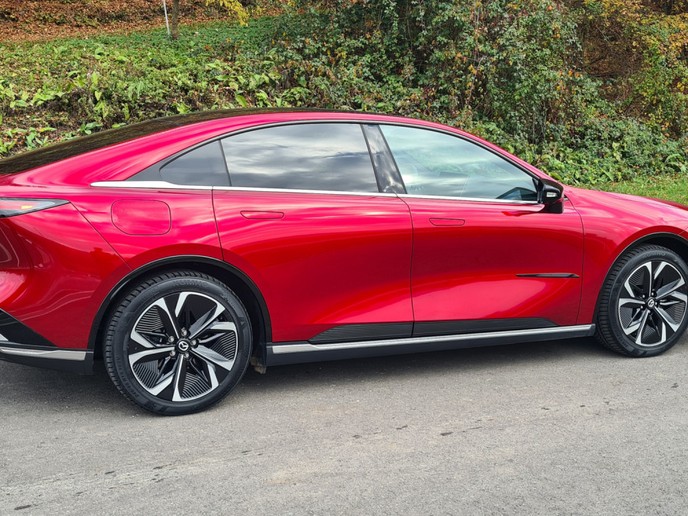 Slednja je po oceni Namarja namenjena tistim, ki bodo avto večinoma polnili doma in jim več pomeni večji doseg. Voznikom, ki se bodo veliko vozili in polnili na javnih polnilnicah, je namenjena manjša baterija. Da so Kitajci imeli prste vmes, kaže pogled paketov opreme. Doplačil z izjemo barve ni. Serijska oprema vključuje panoramsko streho, projicirni zaslon, prezračevane in ogrevane sedeže, ogrevanje volana, elektronsko vlečna kljuka ter 27 varnostnih sistemov. Serijska barva je bela.