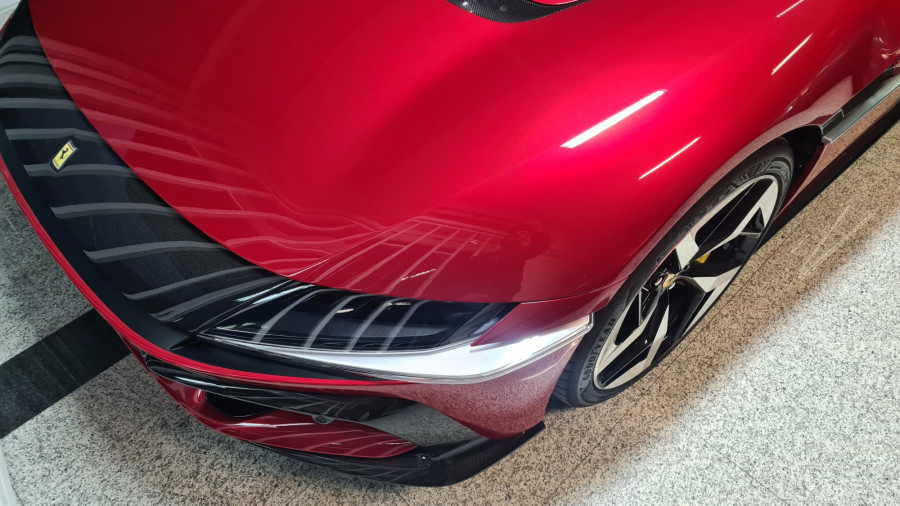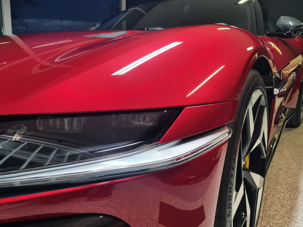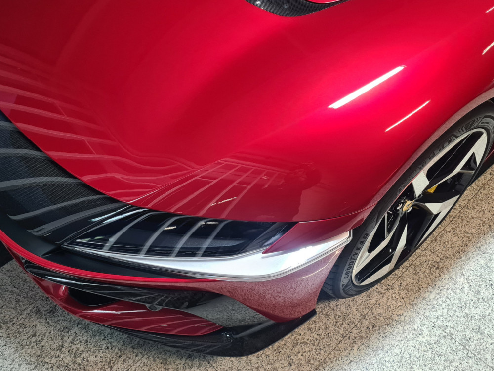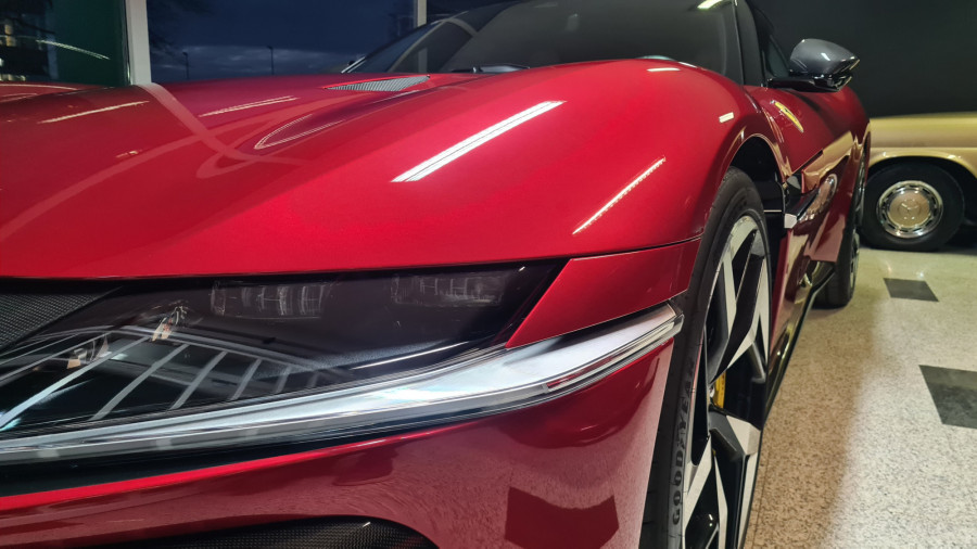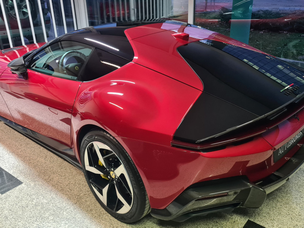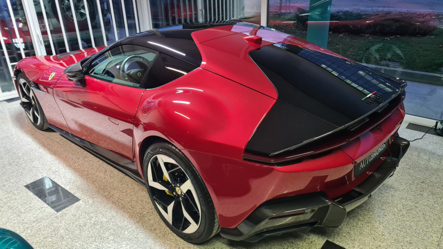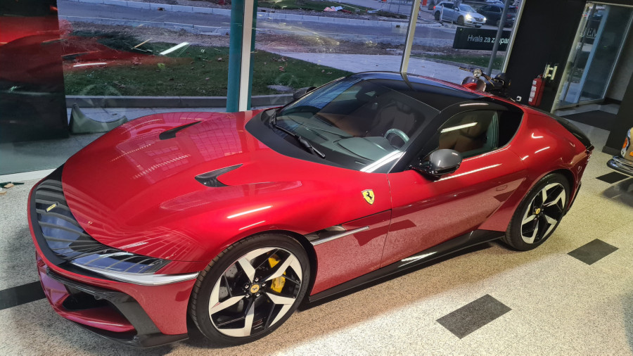Tudi Ferrari izpuste znižuje s hibridi. V letu 2025 so izpuste zniževali z modelom 296 iz jedra ponudbe. Oznaka GTB označuje kupejevsko izvedbo. Čeprav gre za ferrarija iz spodnje polovice ponudbe in ima za osnovo 'le' šestvaljnik, ima zaradi hibridnega pogonskega sklopa 610 kilovatov (830 konjskih moči). Gre za polno opremljen primerek. ''Ima ves možni karbon, tudi okoli motorja, paket assetto fiorano, risan Ferrarijev grb, vse ima … To je eden najbolj opremljenih primerkov na svetu,'' je pojasnil Branko Krznarič iz podjetja Lanibra, ki je vozilo dobavilo.