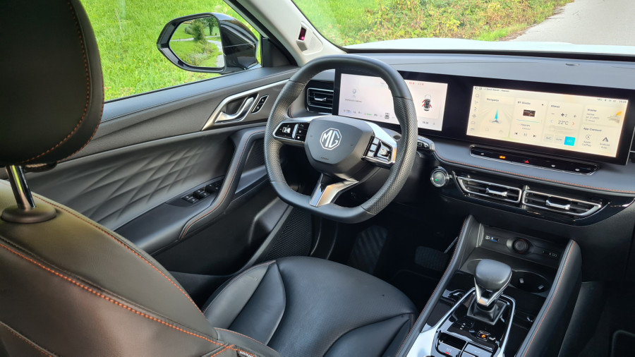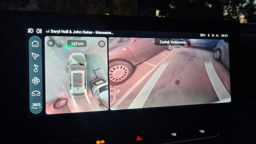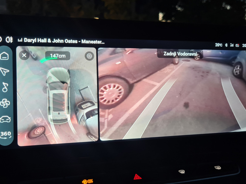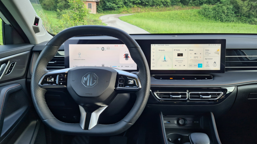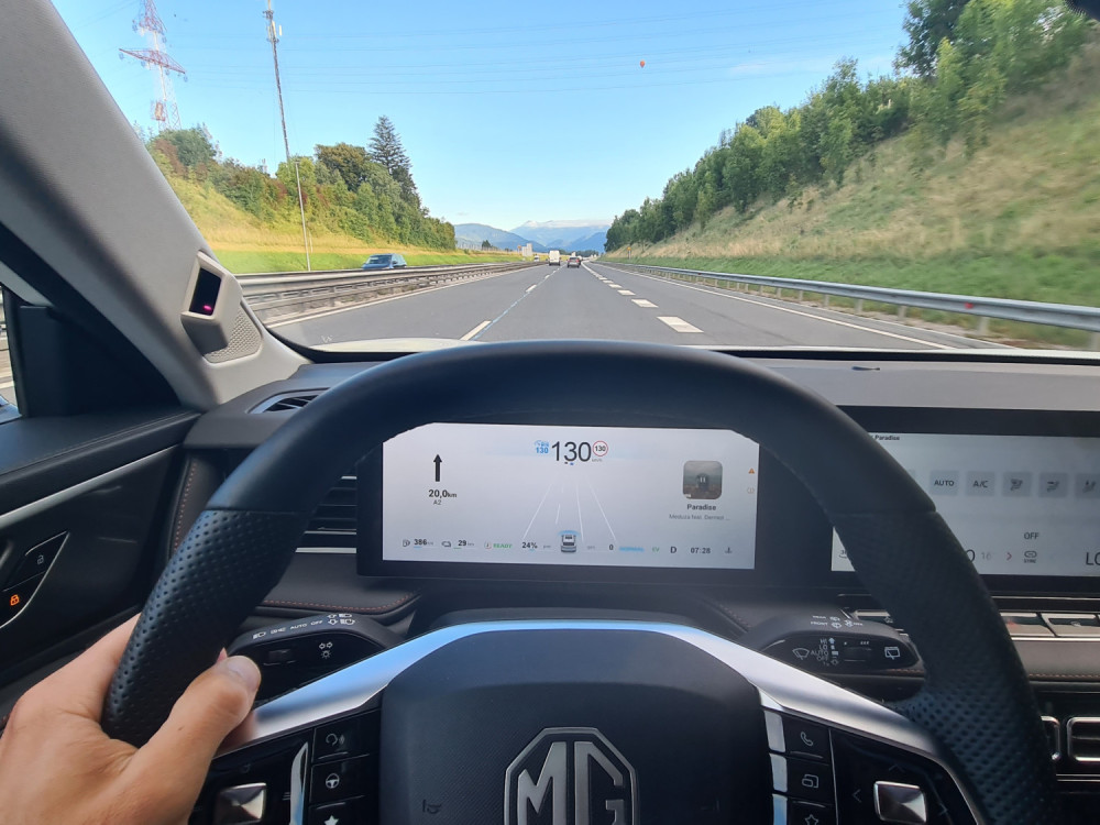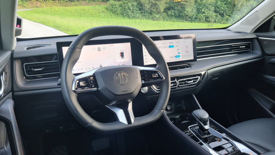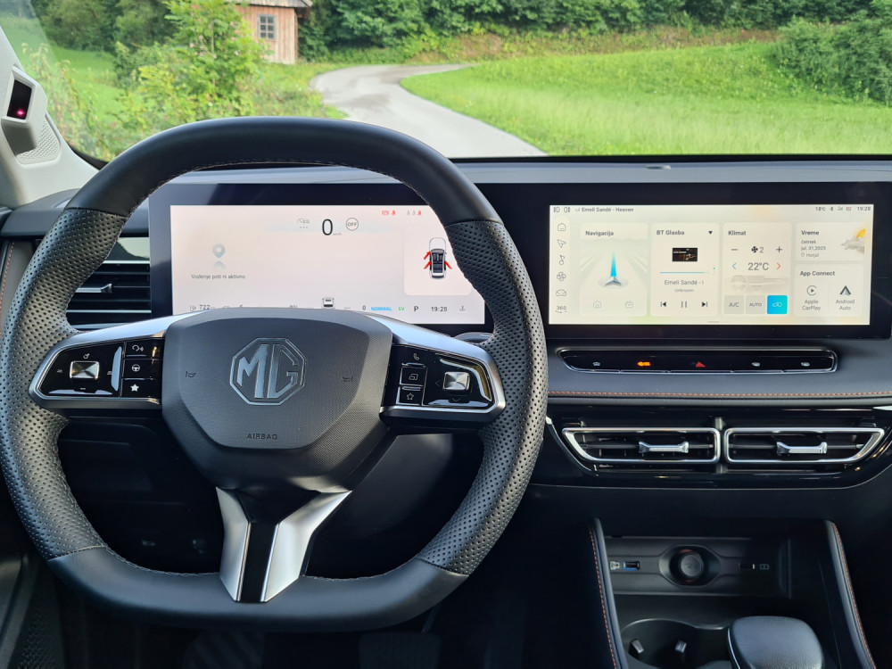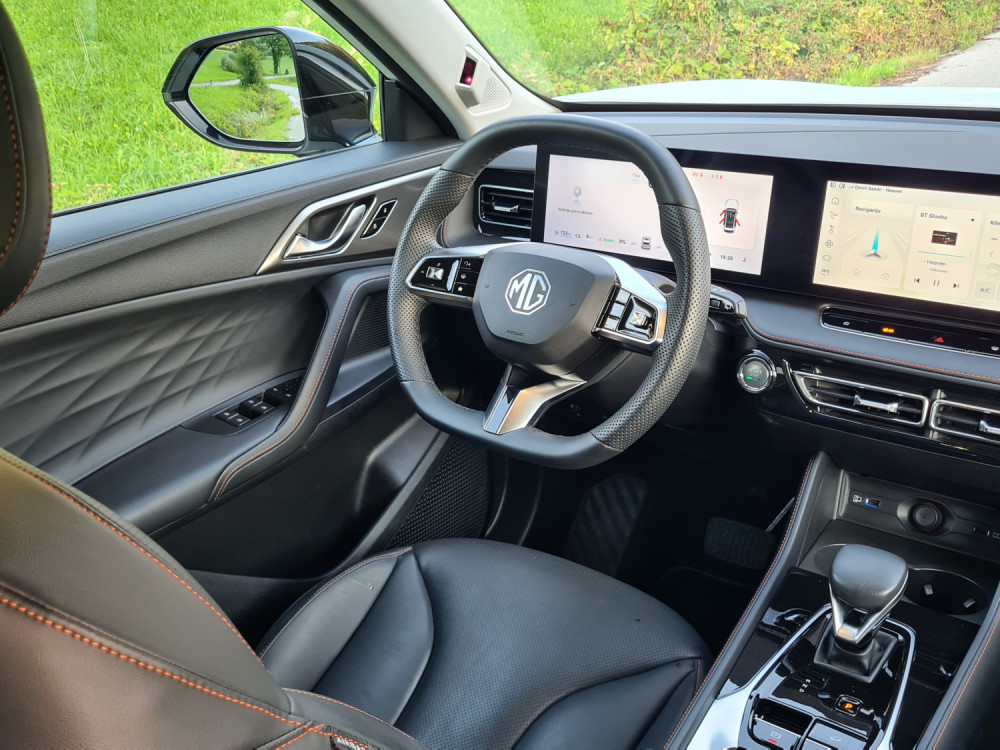 Čisto drugače je z multimedijskim sistemom. Kitajske znamke naj bi bile boljše pri multimediji, aplikacijah in povezljivosti. A me je MG razočaral. Multimedijski sistem je prijeten na pogled, vendar počasen. Včasih se na prvi pritisk sploh ni odzval, kar je med vožnjo zelo moteče. Medtem pa zaslon pred voznikom jasno in pregledno prikazuje podatke, tudi tiste, ki jih večina ne. Najbolj všeč mi je izpisana razdalja od zidu na vzvratni kameri. Ob spreminjanju voznega pasa vključi kamero, ki prikazuje dogajanje v mrtvem kotu.
