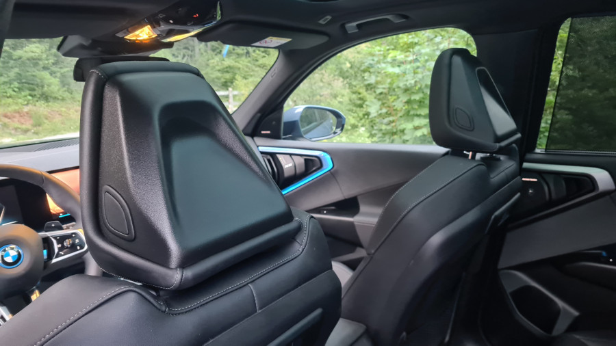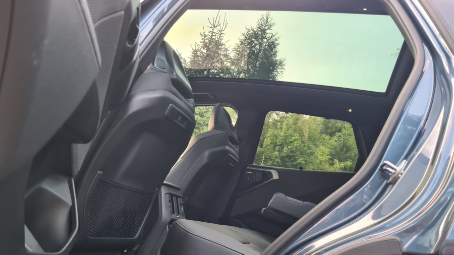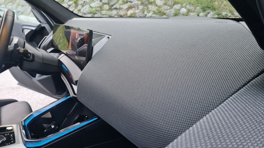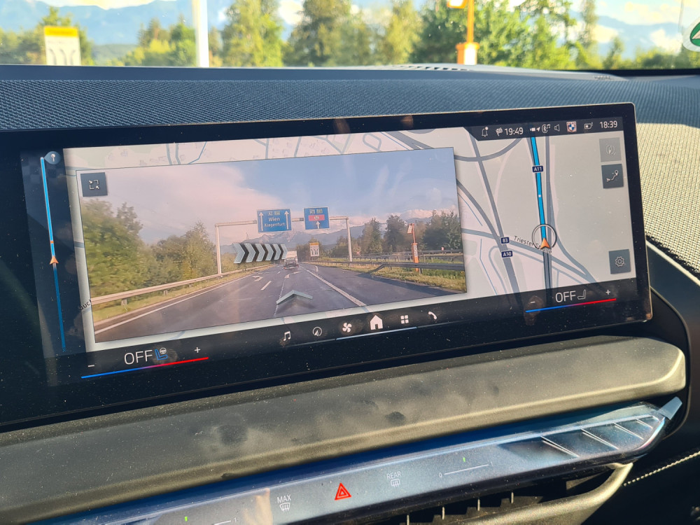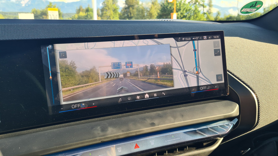 BMW se ni zaplezal s potopnimi kljukami. Kljub videzu se kljuke s prijemom ne premaknejo. Prostor v kabini je radodarno odmerjen, močno pri tem pripomore veliko panoramsko okno (doplačilo 1.658 evrov). Delovno okolje je po najnovejši modi. Minimalistično. Velik zaslon na dotik ter vrtljivo stikalo na sredinskem grebenu z nekaj bližnjicami. Multimedijski sistem je znan in odličen. Hiter, z jasnimi meniji. Po zaslonu sem brkljal s prsti, vrtljivi gumb sem uporabil le redko.