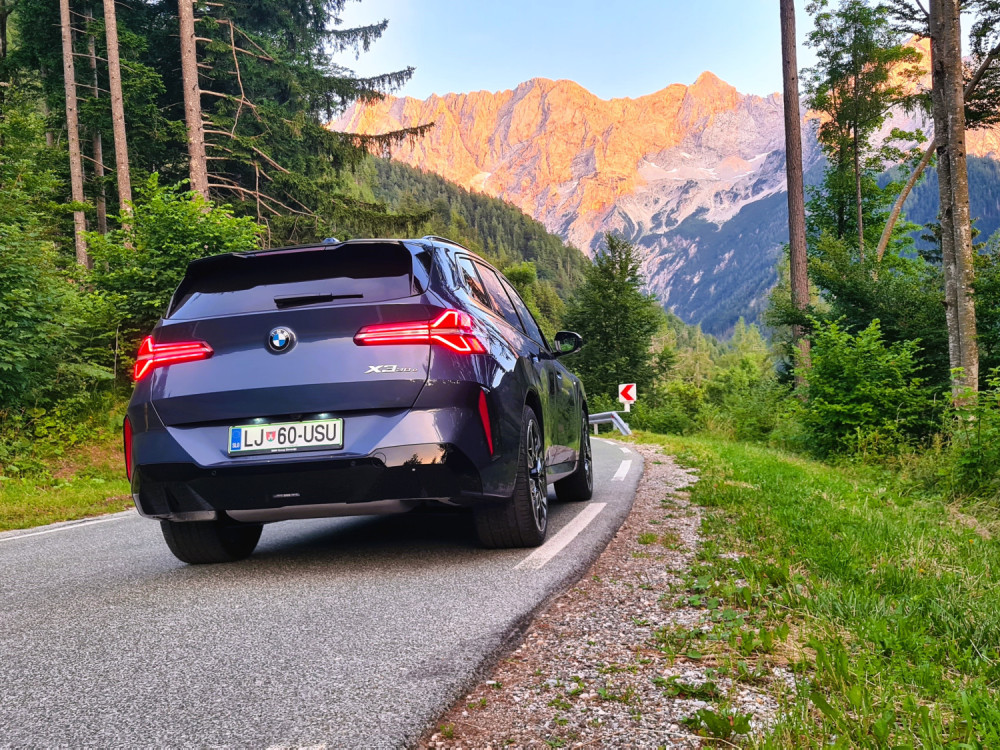 Na poti iz Münchna sem imel na avtocesti priložnost raztegniti noge X3. Dosegla sva do 230 kilometrov na uro, čeprav v tehničnih podatkih navajajo največjo hitrost 215 kilometrov na uro. Lovljenje hitrosti mu ne gre najbolje, precej raje ima sproščeno in varčno vožnjo, ko izklopi motor in jadra. Celo pot z Vršiča je vozil brez motorja in polnil baterijo. Od vrha Vršiča do jezera Jasna je v baterijo vrnil 10 kilometrov dosega. S to energijo sem nato vozil do Jesenic oziroma približno 24 kilometrov.