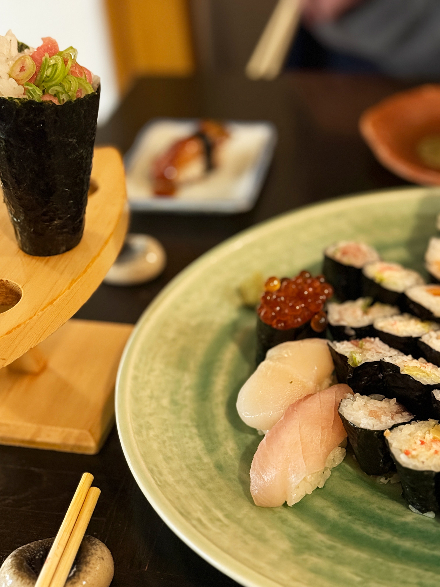 Začnite preprosto: miso juha (5 CHF), slana solata iz morskih alg (12 CHF). Ne preskočite razkošnega pan-fried foie gras s ponzu ali yuzu-limono (29 CHF). Sushi: fatty tuna temaki (16 CHF), eel nigiri (8 CHF), smoky salmon-skin hosomaki (13 CHF).