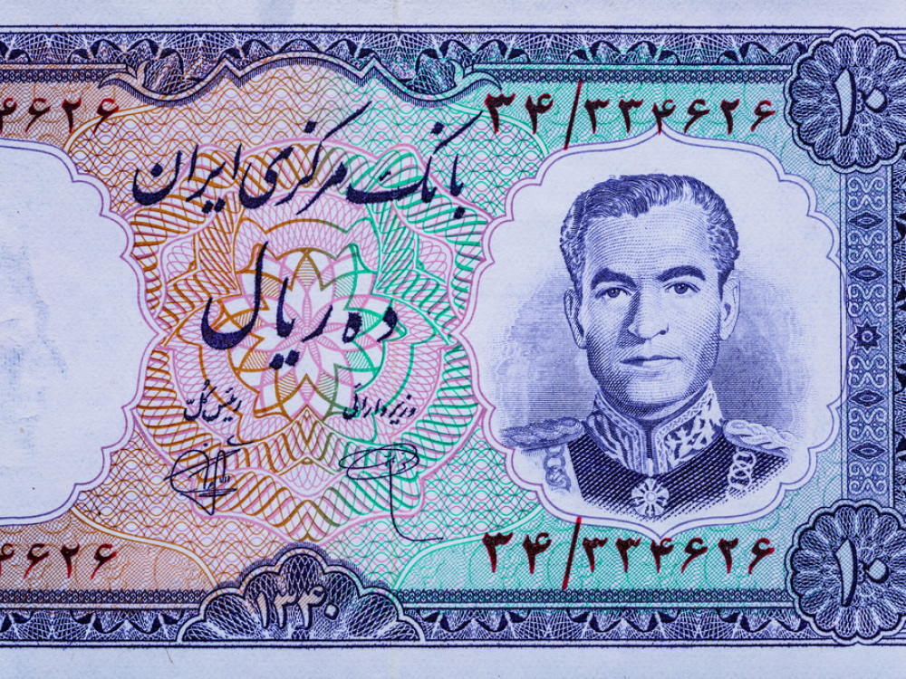 Zgodnja 1960-ta leta, bankovec za 10 rialov iz leta 1961 z Mohammadom Rezo Shahom Pahlavijem v vojaški uniformi. Del svetovne zbirke valut in numizmatike. Foto: Depositphotos
