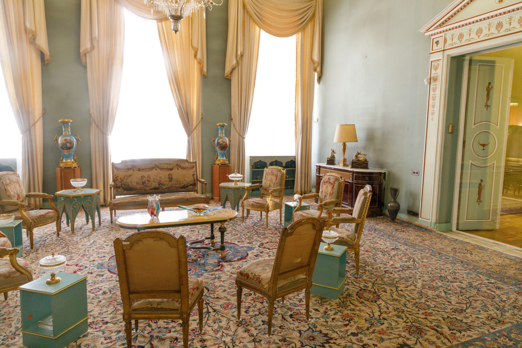 Eden najlepših palač in turističnih znamenitosti v Iranu je kompleks Sa'dabad. Na fotografiji: zeleni salon v Sa'dabadu. Foto: Depositphotos