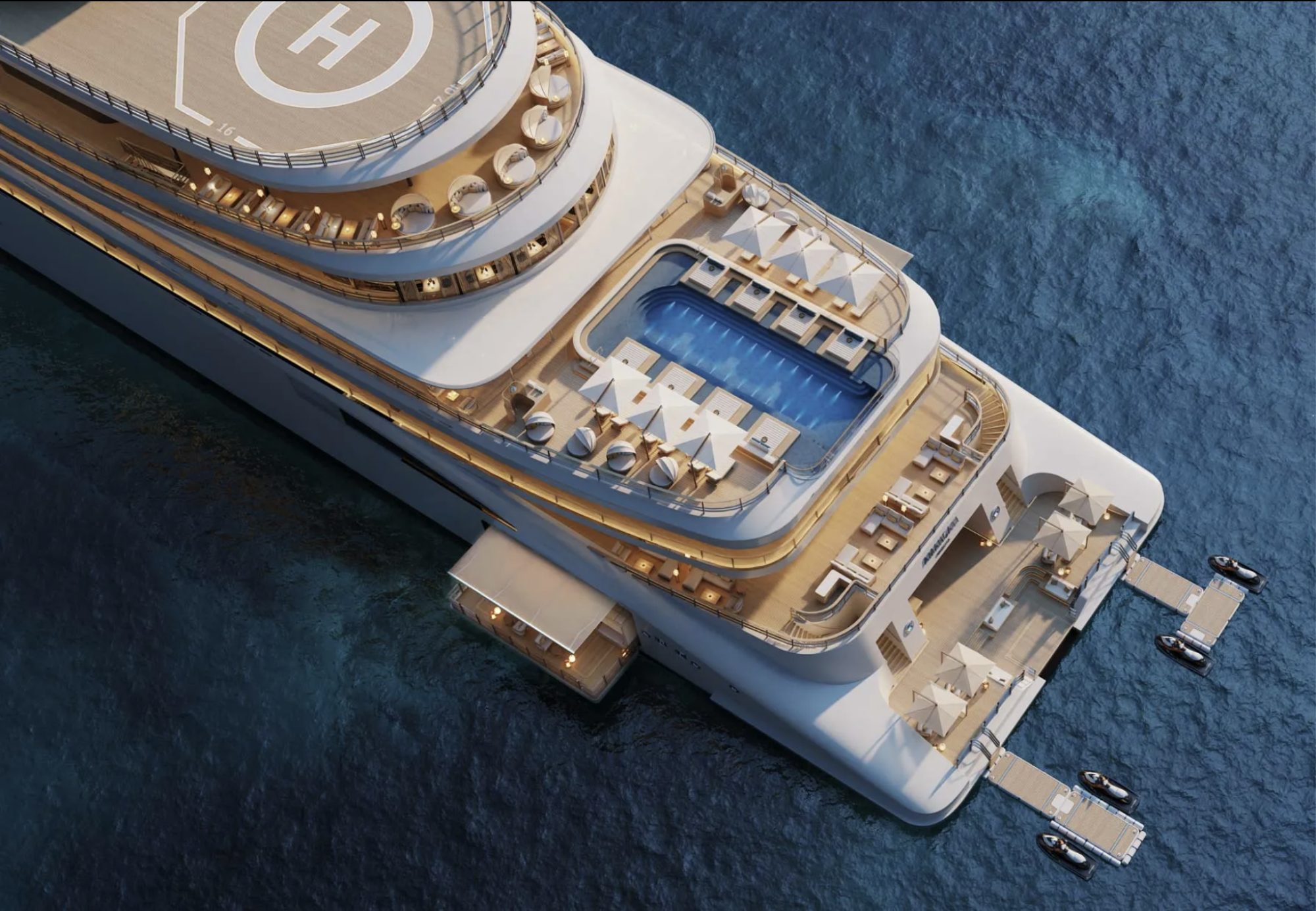 Amangati in eden njegovih heliodromov. Vir: SINOT Yacht Architecture & Design
