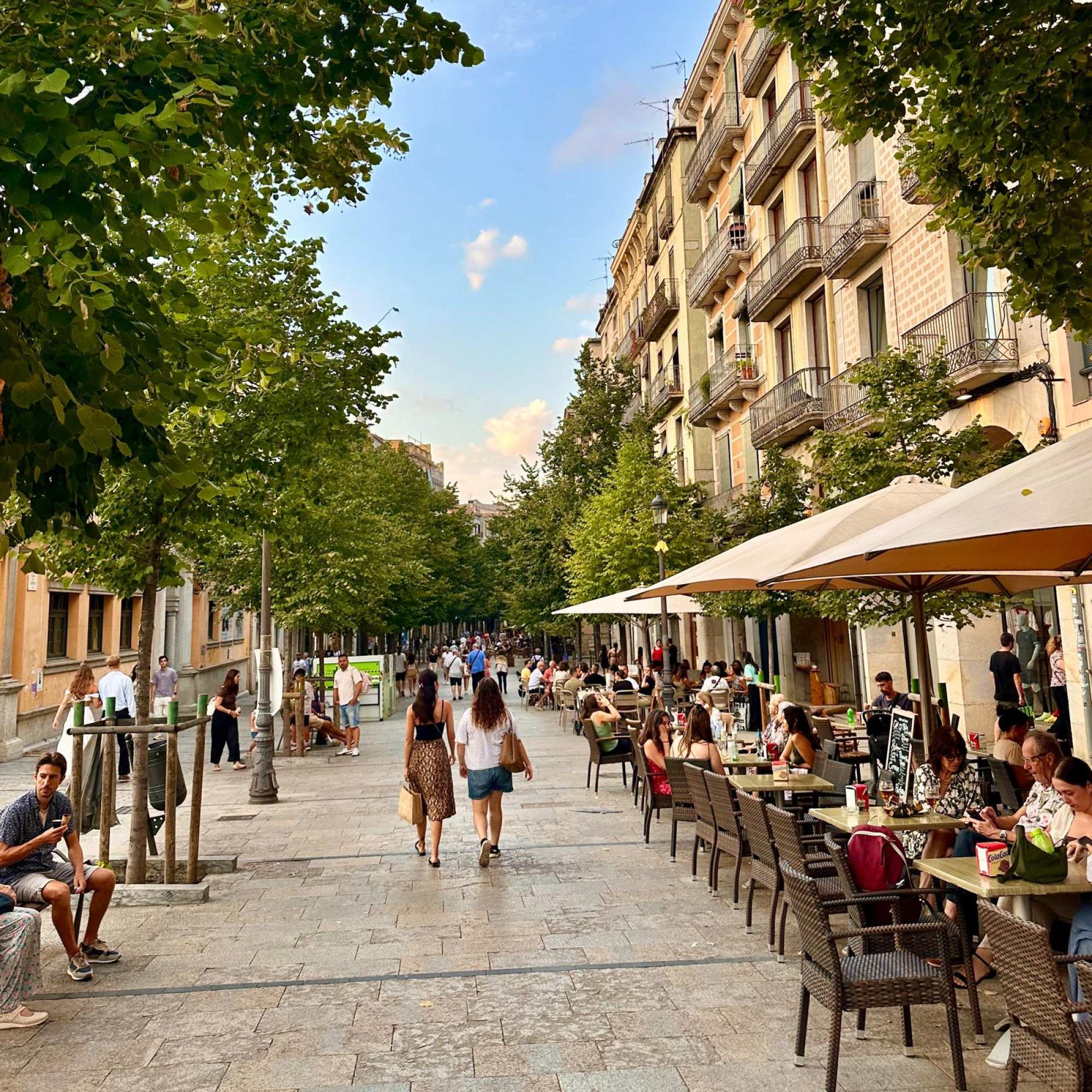 Če želite začutiti vsakdanjo Girono, so mestno obzidje in sprehajalna pot Passeig de la Muralla najboljša izbira. To je Girona v eni liniji: strehe, cerkveni zvoniki, zelenje in občutek, da ste nad gnečo in časom. V takšnih trenutkih mesto deluje, kot da je zasnovano za vikend pobeg ljudi, ki so poklicno preobremenjeni.
