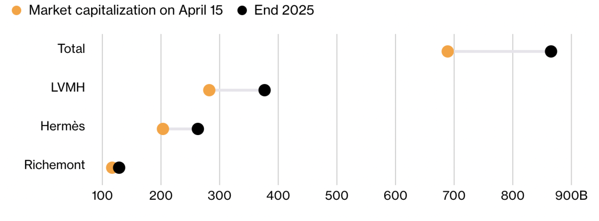 Deset največjih evropskih luksuznih družb je od začetka leta izgubilo približno 176 milijard dolarjev tržne kapitalizacije, kažejo podatki Bloomberga. Skoraj 100 milijard dolarjev tega padca gre na račun LVMH, ki velja za ključni barometer panoge. Medtem je širši indeks Stoxx 600 v istem obdobju pridobil 4,6 odstotka.